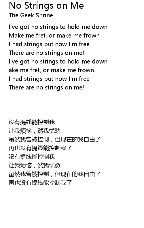 | 歌曲 | No Strings on Me |