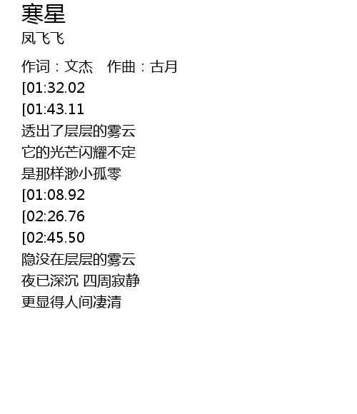 | [00:15.79][01:43.11] | 一颗寒星 |