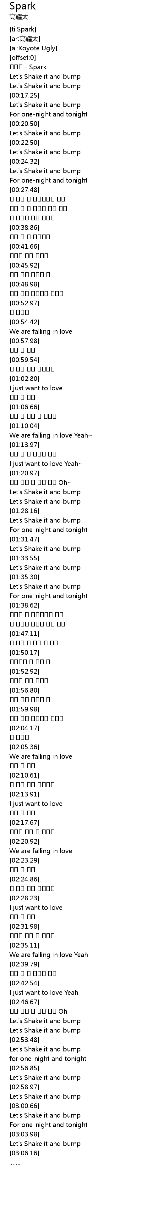 | [00:00.81] | 코요태 - Spark |