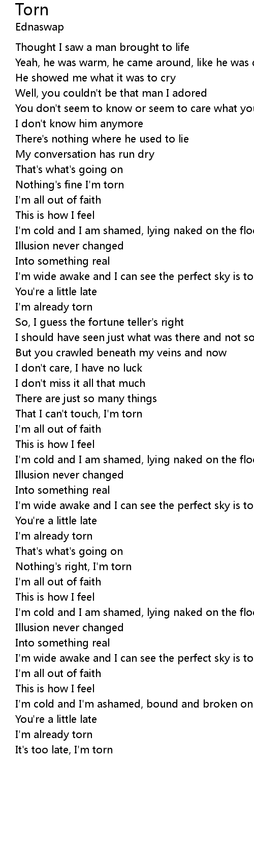 | Nothing's right, I'm torn | |