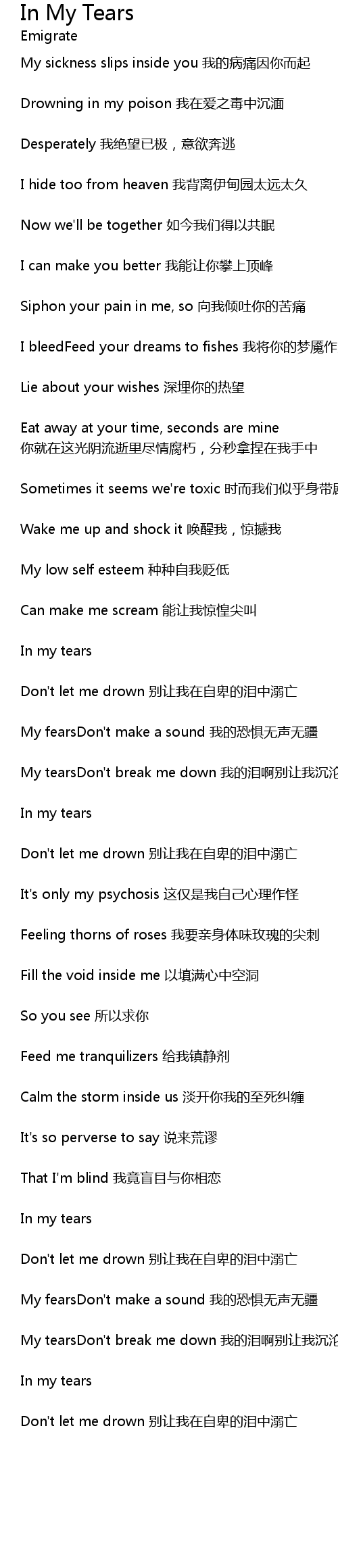 | My tearsDon' t break me down wǒ de lèi a bié ràng wǒ chén lún | |