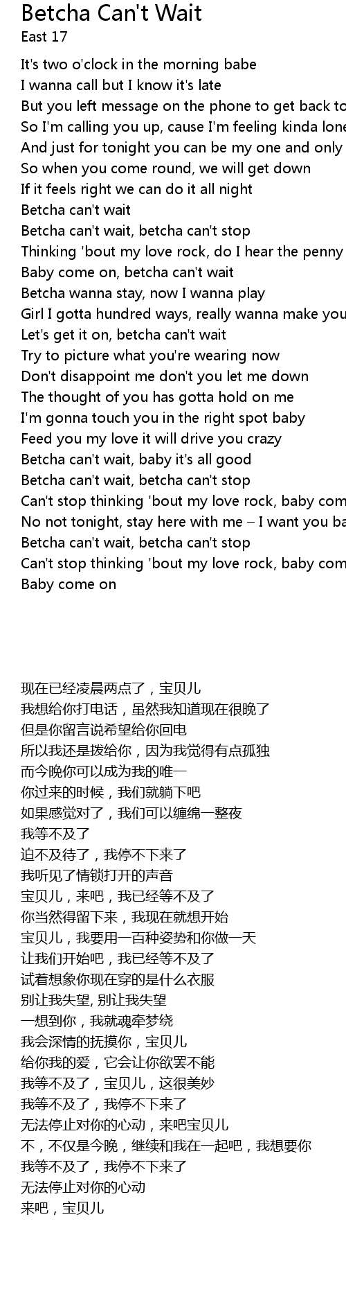 | [01:14.12] | 宝贝儿,来吧,我已经等不及了 |