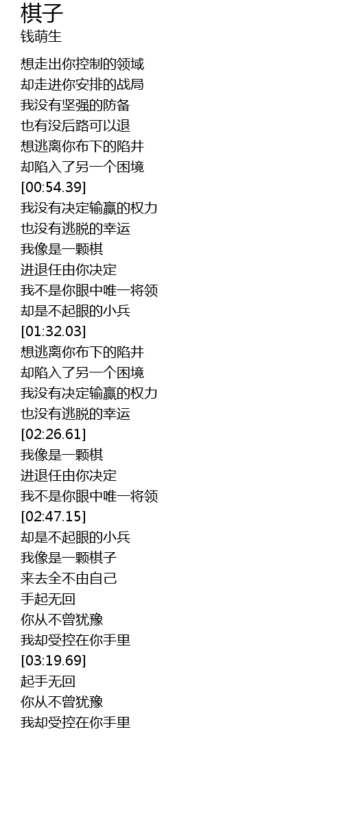 | [02:54.95] | 我像是一颗棋子 |