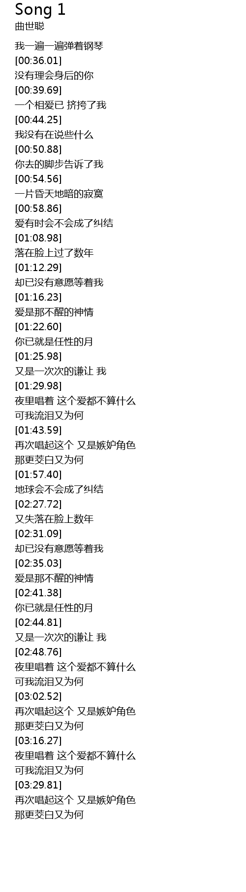 | [00:32.88] | 我一遍一遍弹着钢琴 |