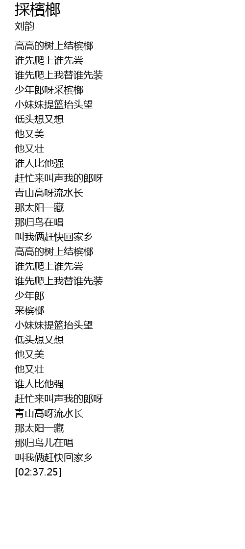 | [00:32.72] | 少年郎呀采槟榔 |