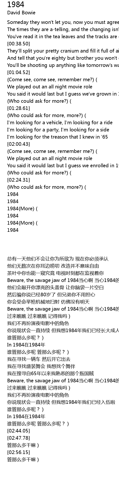 | [01:20.29] | 你说现状会一直持续 但我想1984年我们已经长大成人 |