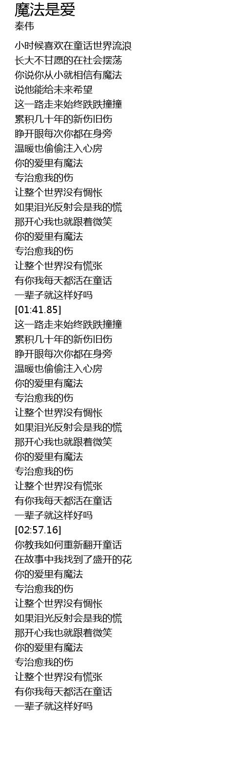| [00:38.37] | 你说你从小就相信有魔法 |