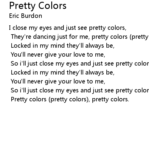 | I close my eyes and just see pretty colors, | |