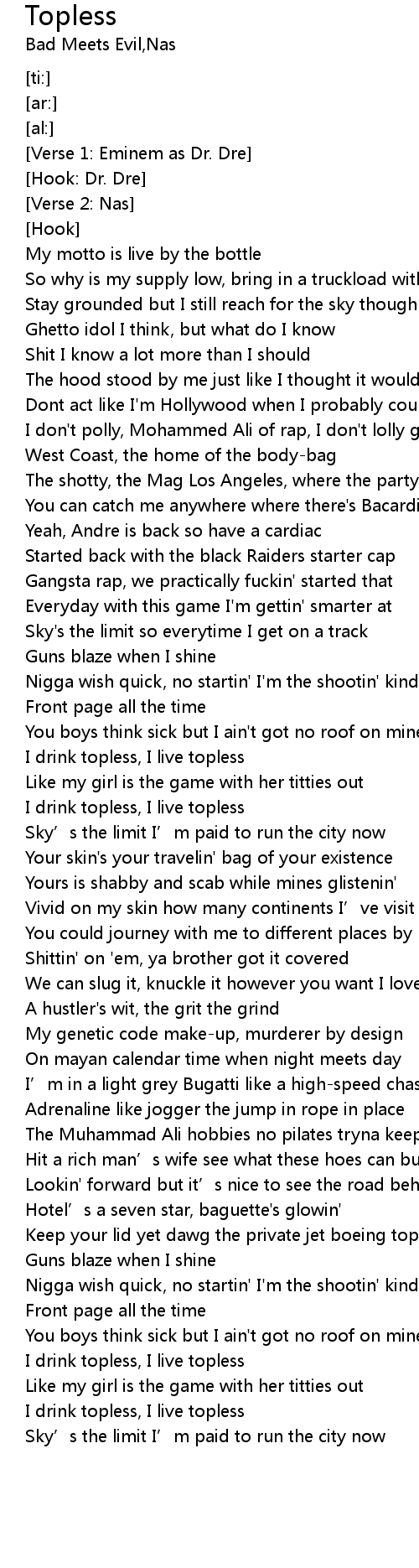 | [01:41.92] | Keep your lid yet dawg the private jet boeing topless |
