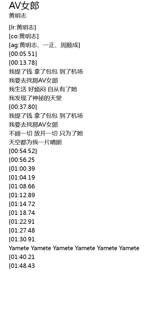 | [00:43.41] | wo yao qu zhao na AV nv lang |