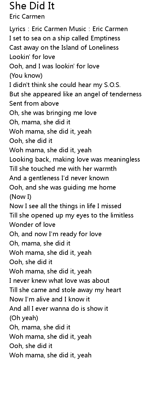 | Lyrics: Eric Carmen Music: Eric Carmen | |