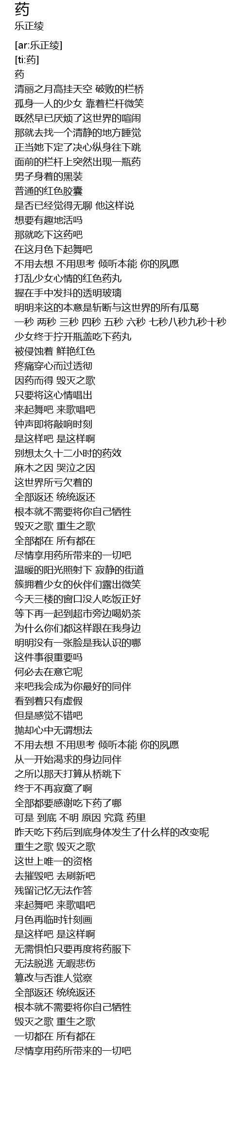| [01:15.22] | 因药而得 毁灭之歌 |