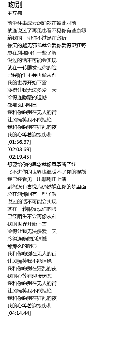 | [04:03.01] | 我和你吻别在狂乱的夜 |