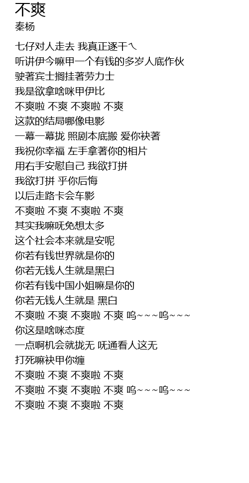 | [00:52.43] | 不爽啦 不爽 不爽啦 不爽 |