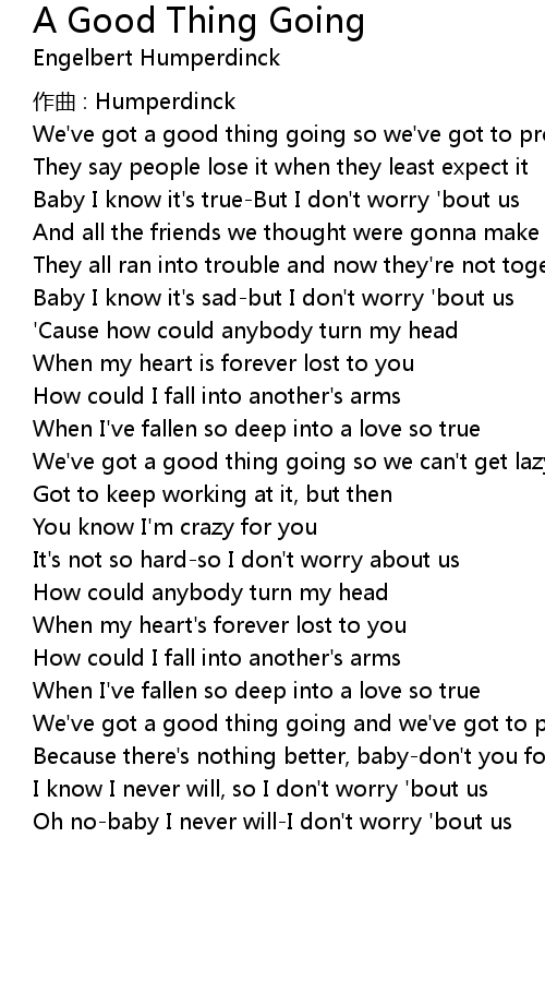 | Baby I know it' s trueBut I don' t worry ' bout us | |