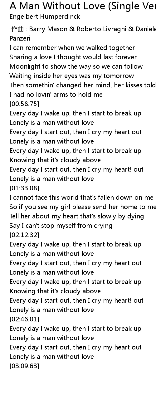 | [00:00.00] | 作曲 : Barry Mason & Roberto Livraghi & Daniele Pace & Mario Panzeri |