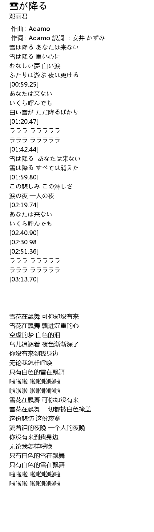 | [02:41.30][02:30.98] | 白い雪が ただ降るばかり |