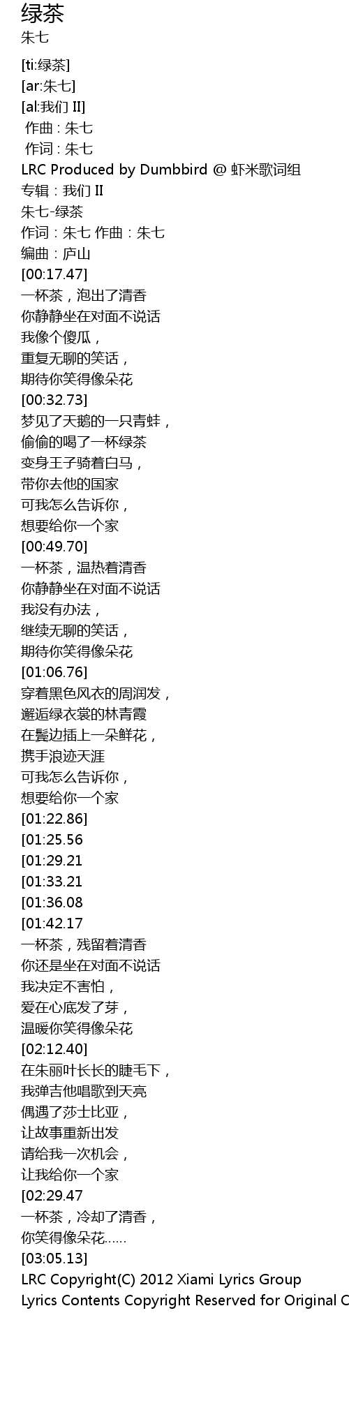 | [00:03.59] | 朱七-绿茶 |