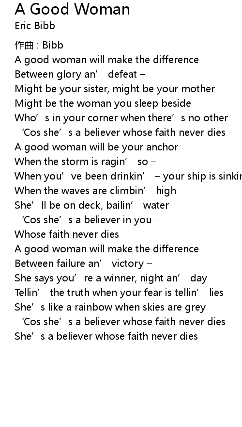 | 歌曲 | A Good Woman |