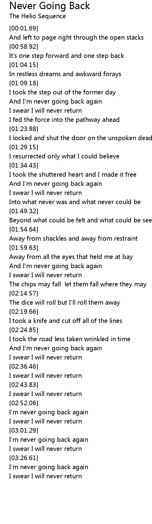 I'm never going back again |