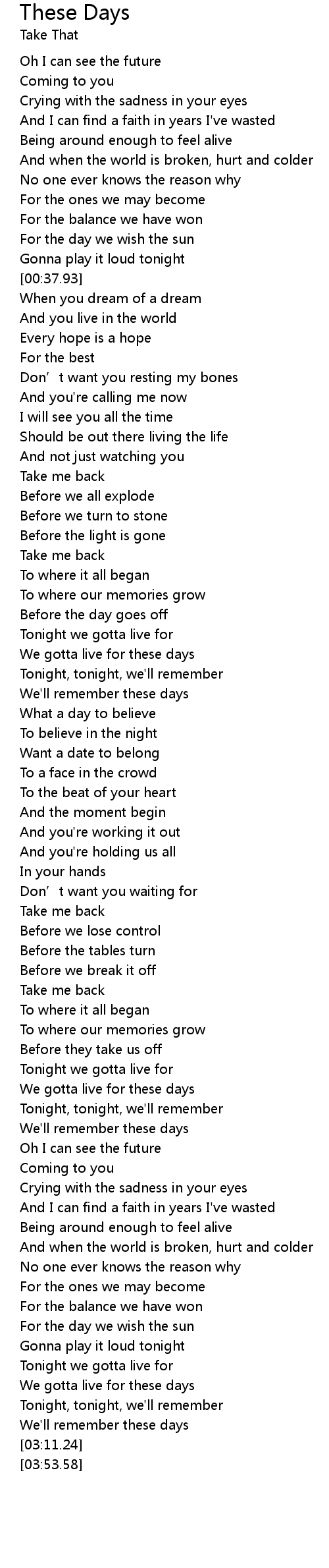 | [02:08.76] | We gotta live for these days |