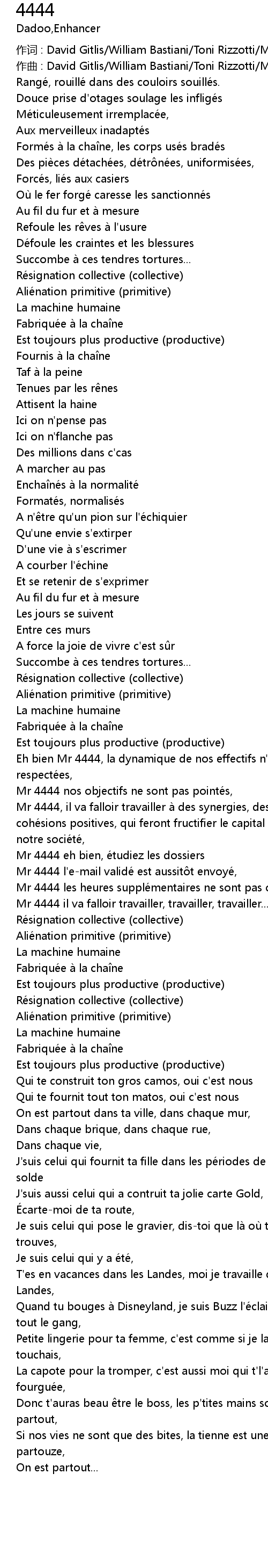 | Mr 4444 il va falloir travailler, travailler, travailler... | |