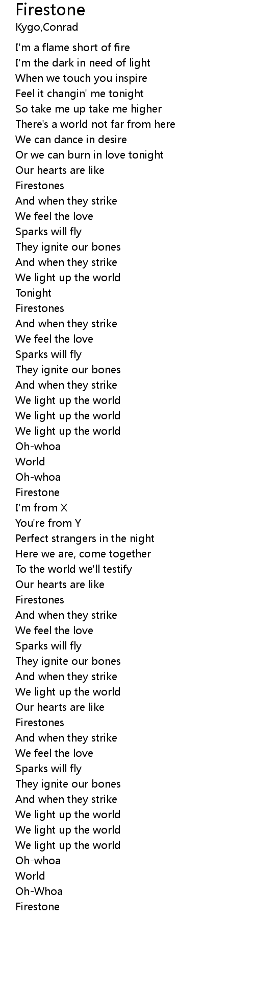 | [00:33.430] | I'm a flame short of fire |