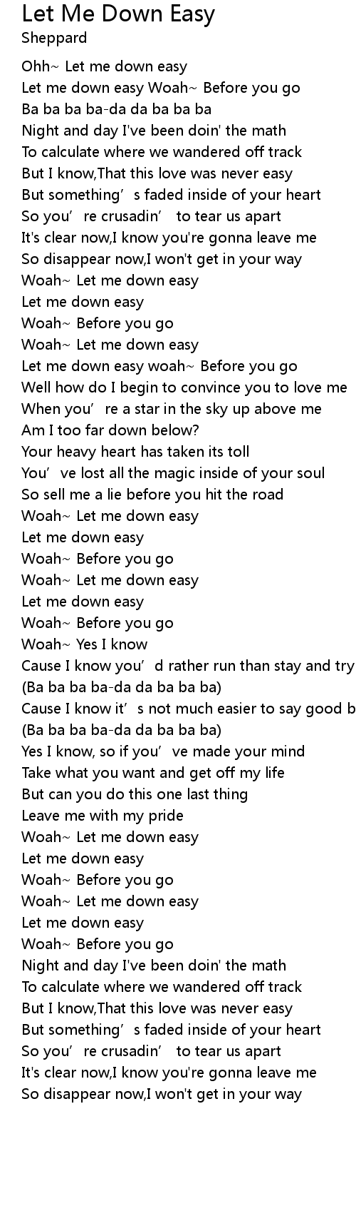| [00:05.350] | Let me down easy Woah Before you go |