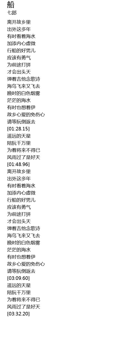| [02:34.77] | xíng chuán de hǎo nán ér |