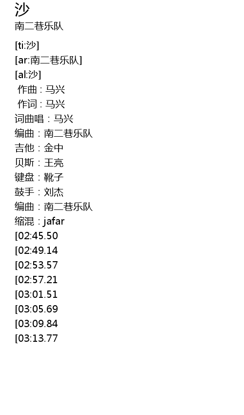 | [00:13:00] | 编曲:南二巷乐队 |