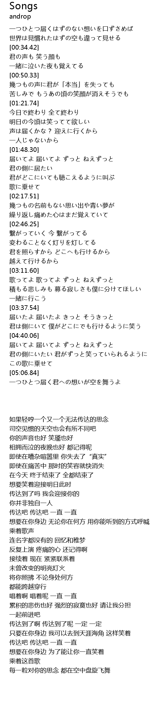 | [04:41.78] | 届いてよ 届いてよ ずっと ねえずっと |