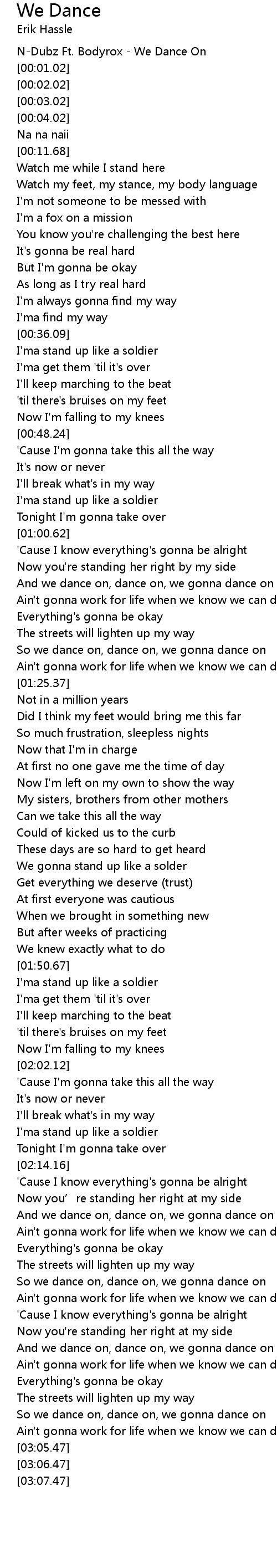 | [01:19.30] | So we dance on, dance on, we gonna dance on |