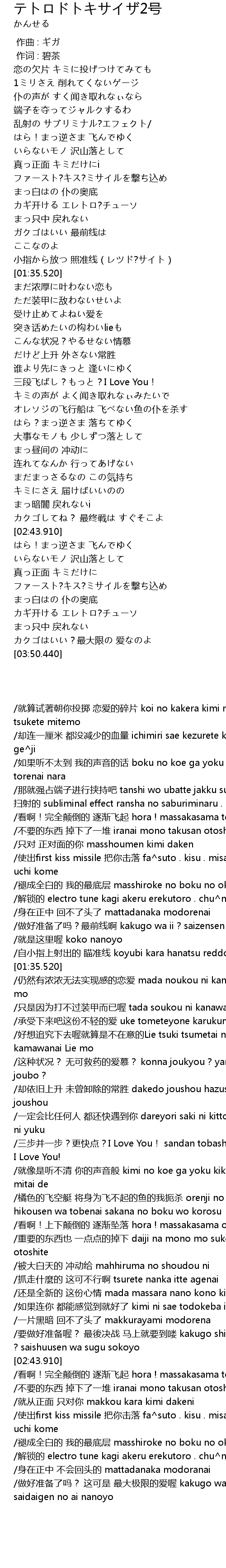| [00:00.00] | 作曲 : ギガ |