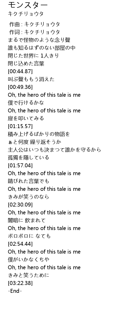 | [02:34.51] | Oh, the hero of this tale is me |