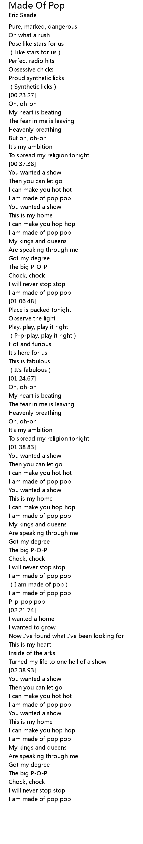 | [03:05.55] | I am made of pop pop |