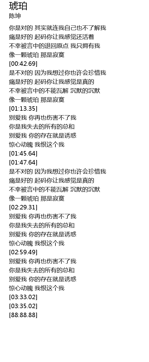 | [00:37.16] | 像一颗琥珀 那是寂寞 |