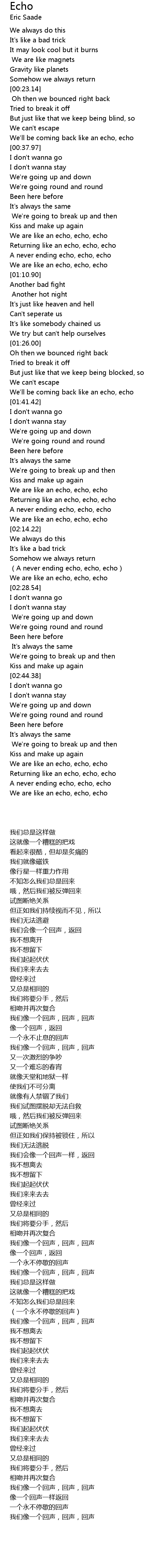 | [02:24.61] | 我们像一个回声,回声,回声 |