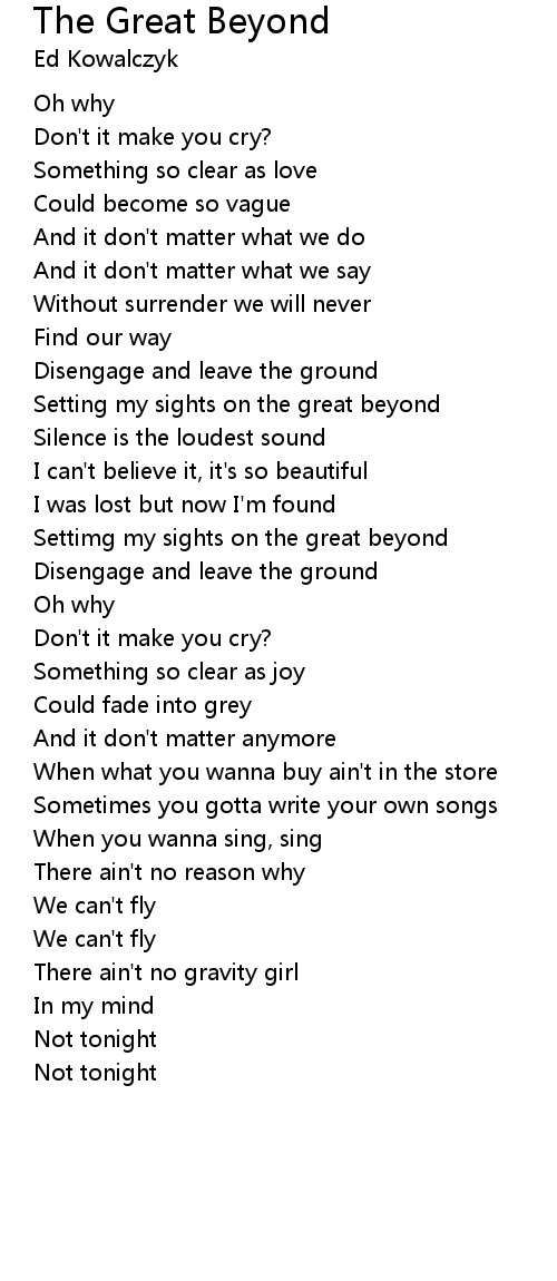 Settimg my sights on the great beyond |