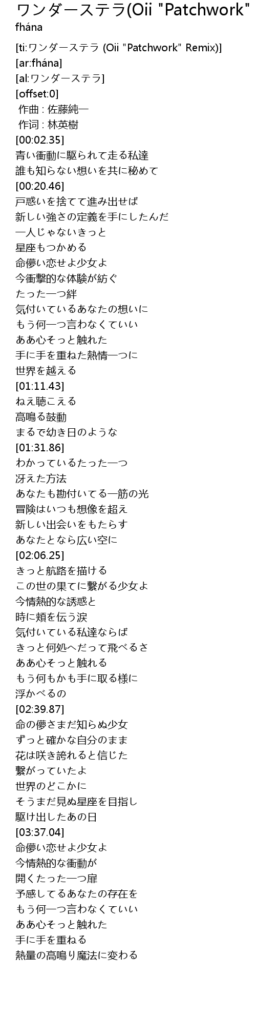 | [ti:ワンダーステラ (Oii "Patchwork" Remix)] | |