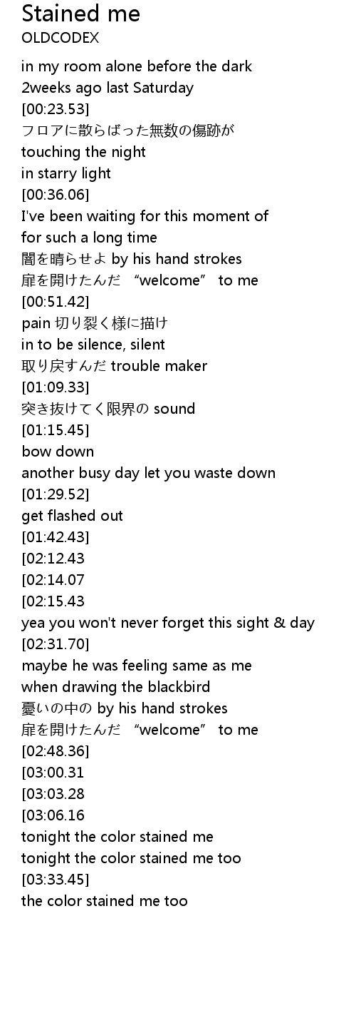 | [02:40.17] | 憂いの中の by his hand strokes |