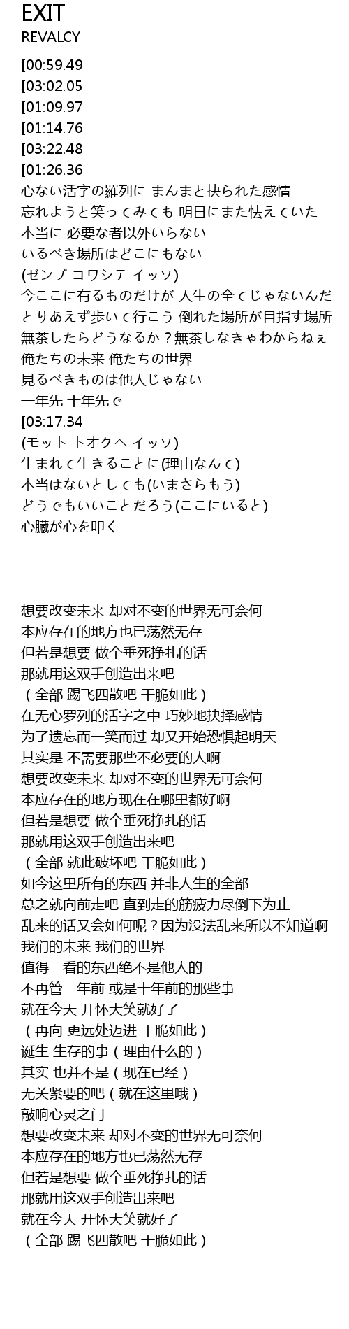 | [00:00.64][00:59.49][02:56.96] | 変えたい未来 変わらない世界 |