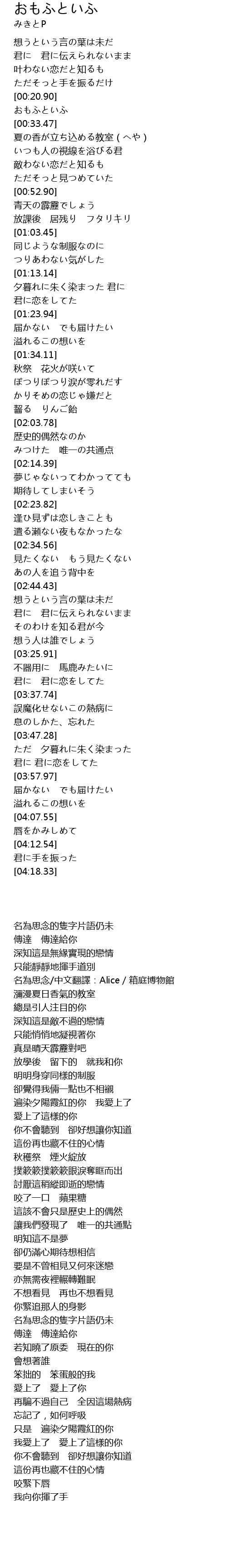 名為思念/中文翻譯:Alice/箱庭博物館 |