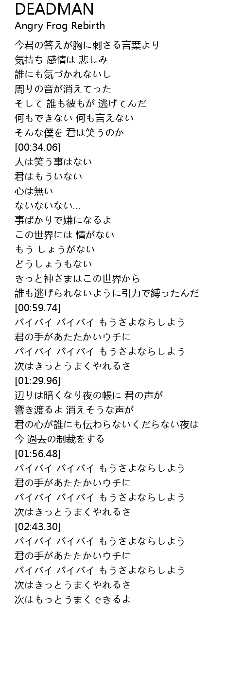 | [02:12.30] | バイバイ バイバイ もうさよならしよう |