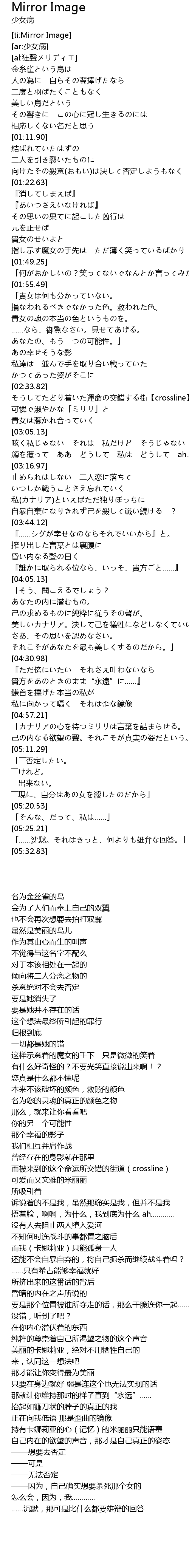 | [04:47.19] | 私に向かって囁く それは歪な鏡像 |