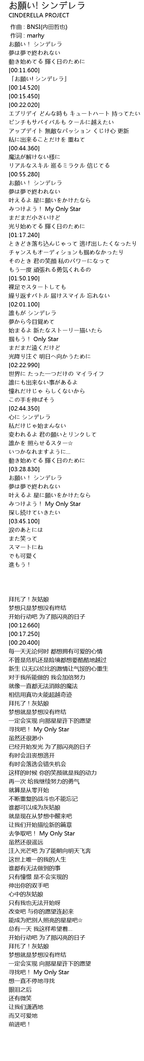 | [00:12.660] | 「お願い! シンデレラ」 |