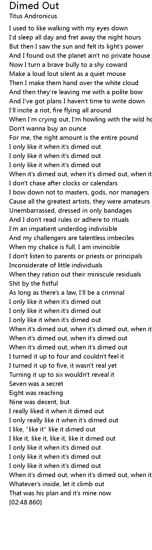 When it's dimed out, when it's dimed out, when it's dimed out |