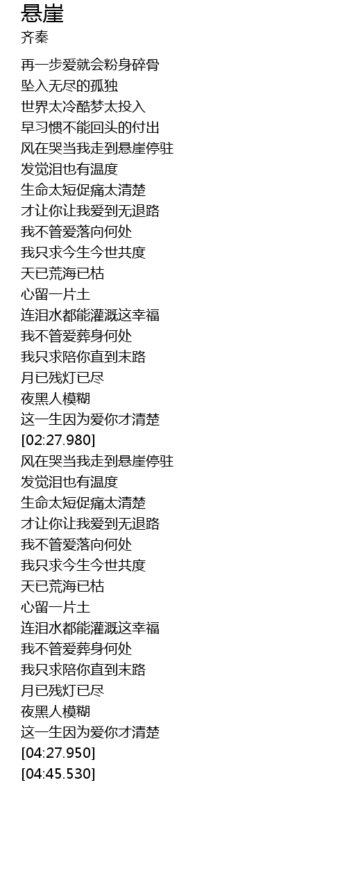 | [00:59.550] | 风在哭当我走到悬崖停驻 |