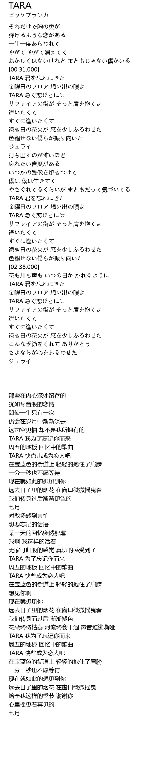 | [00:45.700] | TARA 急ぐ恋びとには |