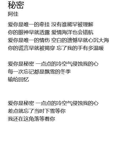 | 爱你是秘密 一点点的冷空气侵蚀我的心 | |