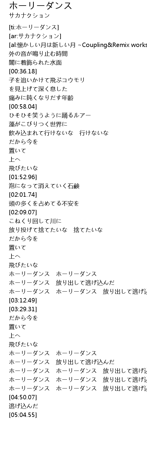 | [04:34.74] | ホーリーダンス ホーリーダンス 放り出して逃げ込んだ |